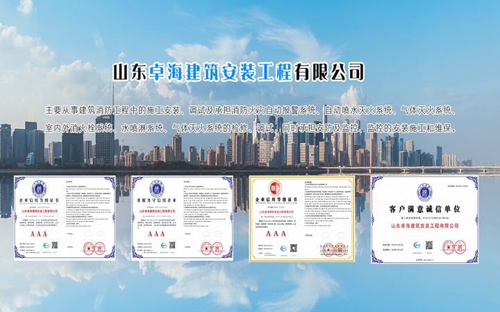 公司具备消防设施工程专业承包贰级资质、建筑机电安装工程专业承包叁级及施工劳务资质,公司拥有一支高素质、技术过硬、经验丰富的专业施工队伍,主要从事建筑消防工程中的施工安装、调试及承担消防火灾自动报警系统、自动喷水灭火系统、气体灭火系统、室内外消火栓系统、水喷淋系统、气体灭火系统的检修、调试,同时承担安防及监控、监控的安装施工和维保。